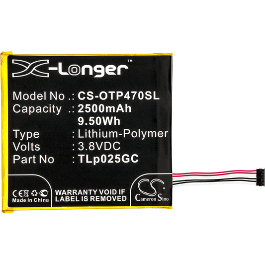 Replacement Battery for Alcatel One Touch Pixi 3 8" 3G – Mobile, SmartPhone – 2500mAh / 9.50Wh / 3.8V