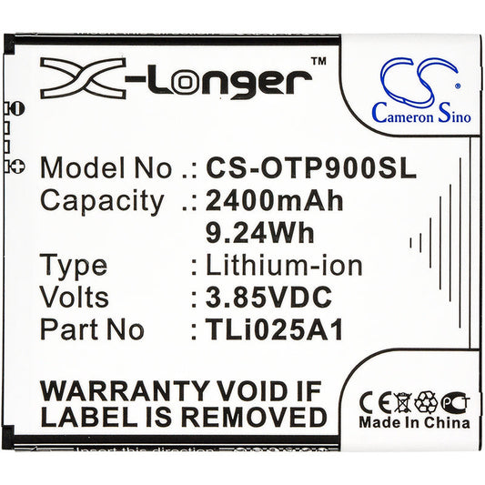 Replacement Battery for Alcatel One Touch Pixi 4 6" – Mobile, SmartPhone – 2400mAh / 9.24Wh / 3.85V