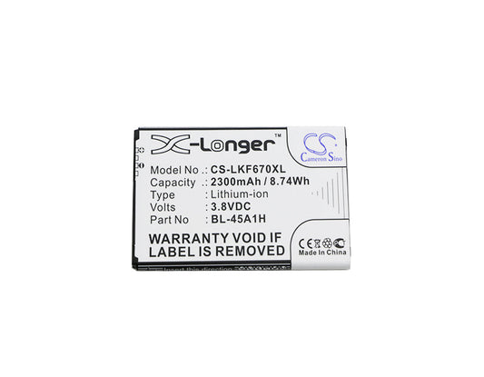 Replacement Battery for LG F670 – Mobile, SmartPhone – 2300mAh / 8.74Wh / 3.8V