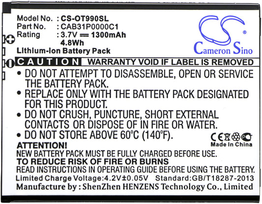 Replacement Battery for MegaFon Optima MS3B – Mobile, SmartPhone – 1300mAh / 4.81Wh / 3.7V