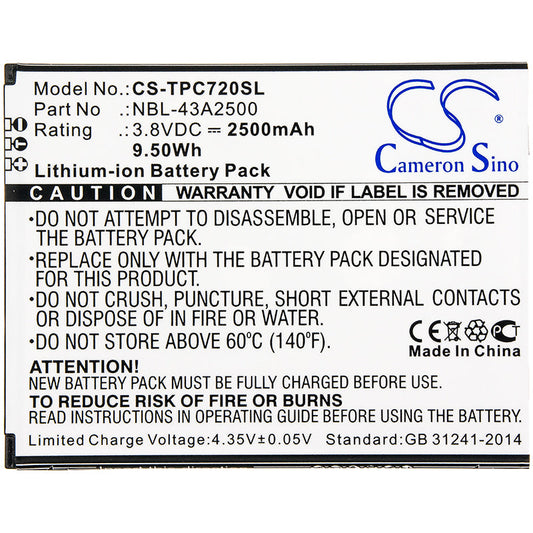 Replacement Battery for Neffos C7s – Mobile, SmartPhone – 2500mAh / 9.50Wh / 3.8V