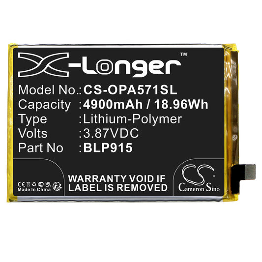 Replacement Battery for OPPO A57 5G – Mobile, SmartPhone – 4900mAh / 18.96Wh / 3.87V