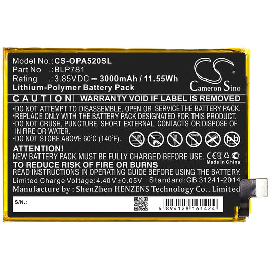 Replacement Battery for OPPO A52 – Mobile, SmartPhone – 3000mAh / 11.55Wh / 3.85V