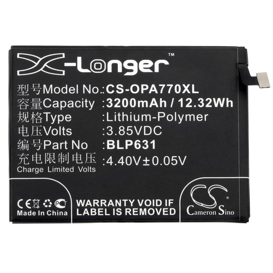 Replacement Battery for OPPO A73 – Mobile, SmartPhone – 3200mAh / 12.32Wh / 3.85V