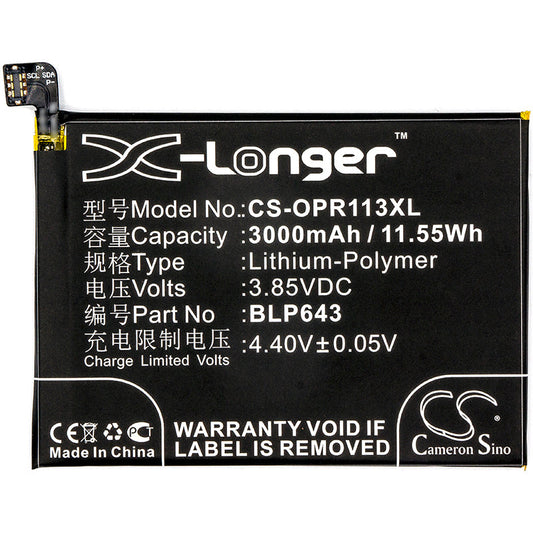 Replacement Battery for OPPO CPH1719 – Mobile, SmartPhone – 3000mAh / 11.55Wh / 3.85V