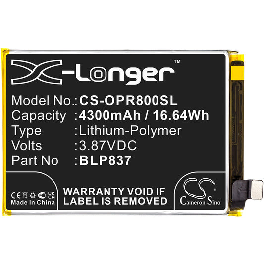 Replacement Battery for OPPO Realme 8 Pro – Mobile, SmartPhone – 4300mAh / 16.64Wh / 3.87V