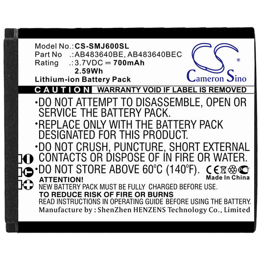 Replacement Battery for Samsung B2710 Solid – Mobile, SmartPhone – 750mAh / 2.78Wh / 3.7V