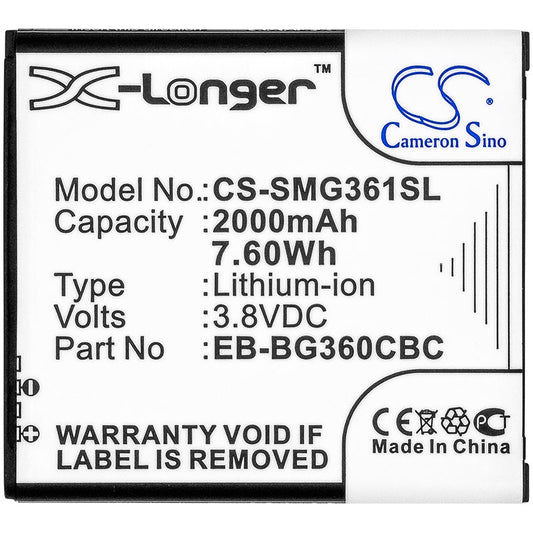 Replacement Battery for Samsung Galaxy Core Prime – Mobile, SmartPhone – 2000mAh / 7.60Wh / 3.8V