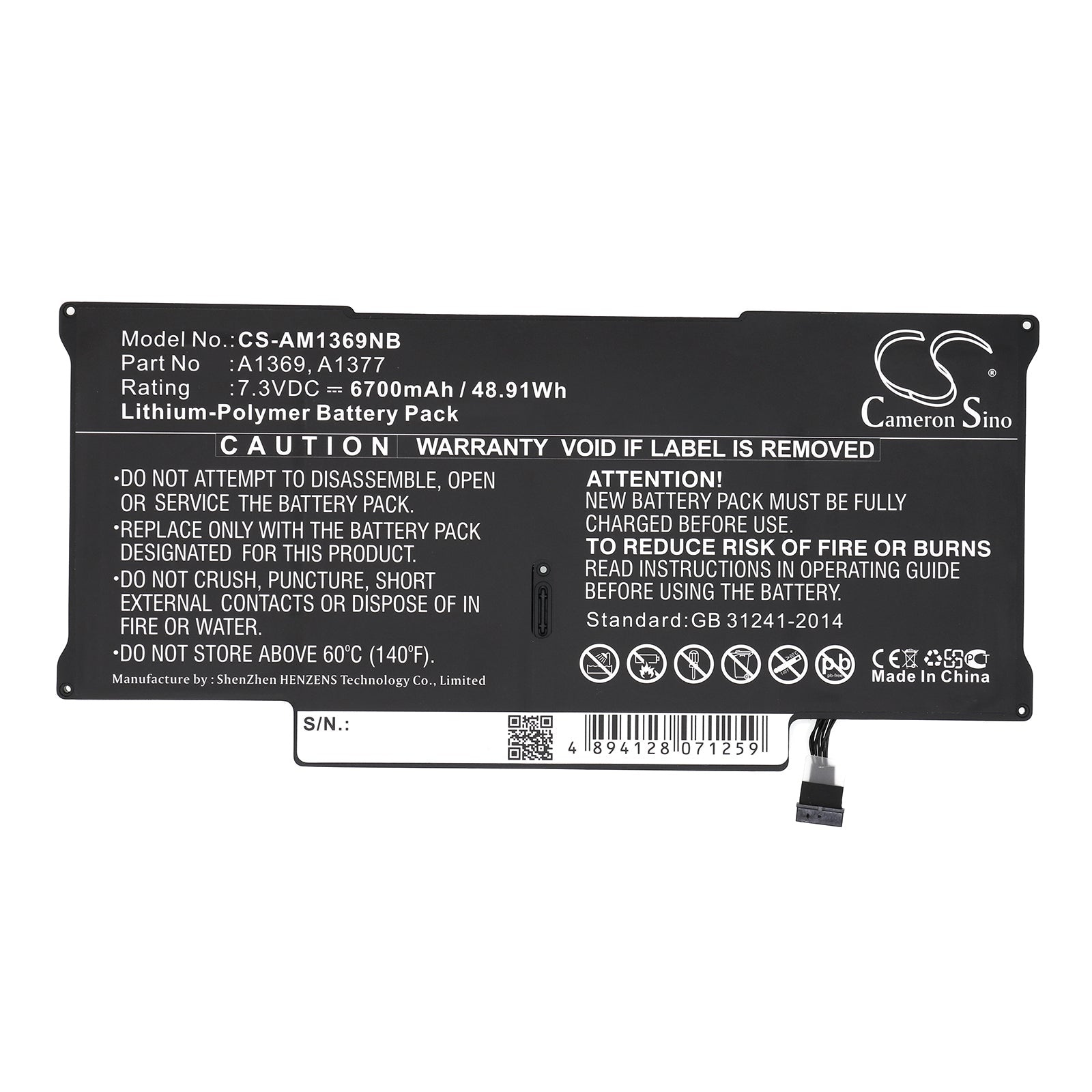 Replacement Battery for Apple Macbook Air 13.3 MC503B/A – Notebook, Laptop – 6700mAh / 48.91Wh / 7.3V