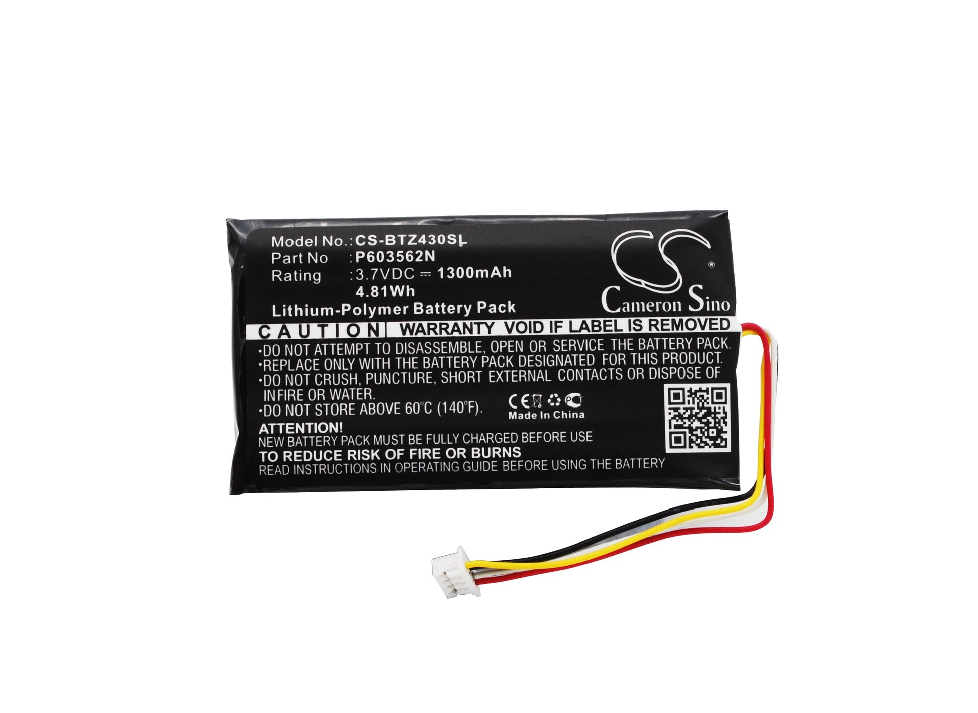 - Capacity: 1300mAh / 4.81Wh / 3.7V