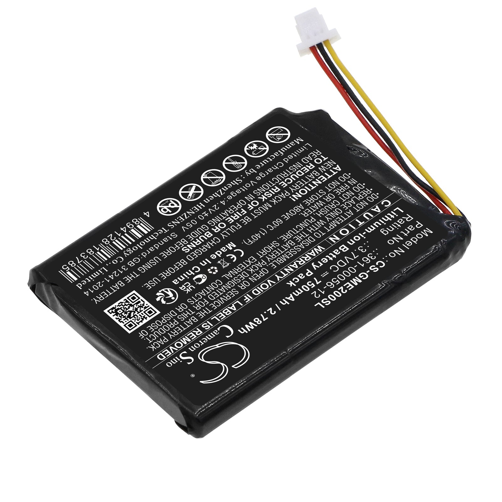 - Capacity: 750mAh / 2.78Wh / 3.7V