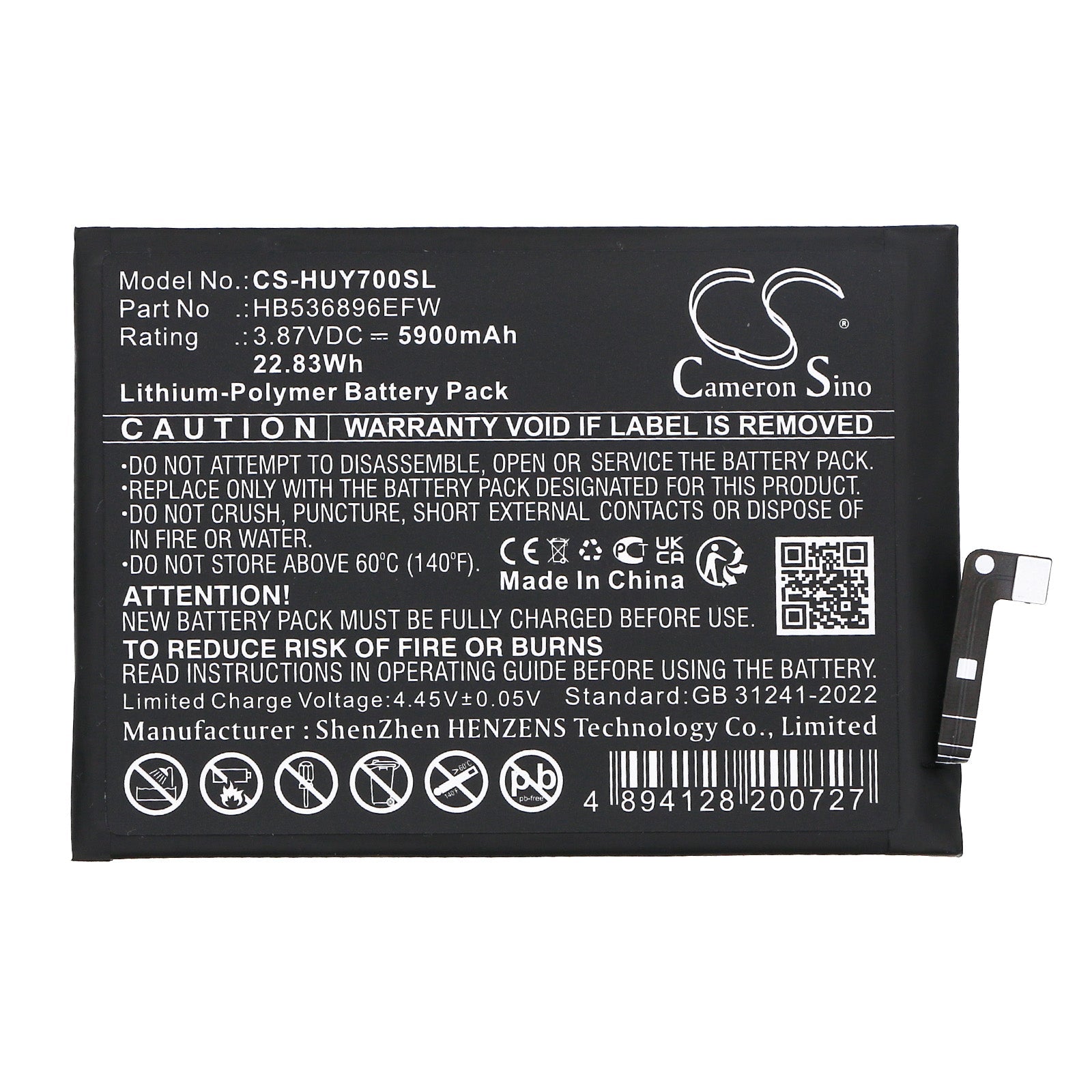 - Capacity: 5900mAh / 22.83Wh / 3.87V
