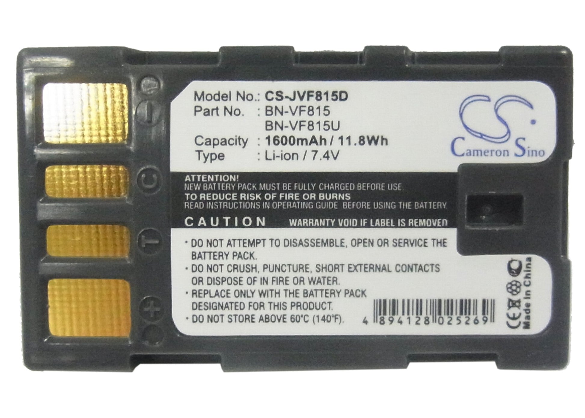Is your JVC camera requiring frequent battery changes? Our quality 1600mAh / 11.84Wh / 7.4V replacement battery provides reliable operation time at a competitive price. This is a compatible third-party product, not manufactured or endorsed by JVC.