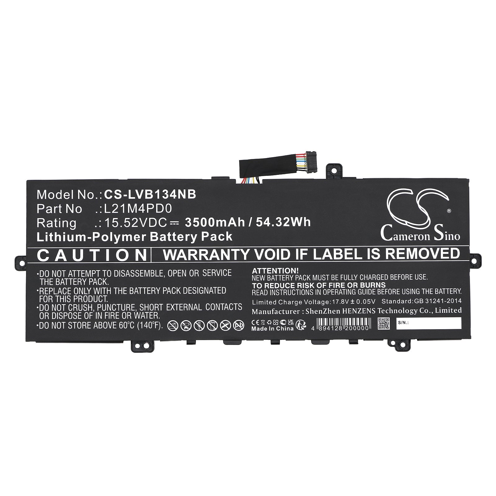 - Capacity: 3500mAh / 54.32Wh / 15.52V