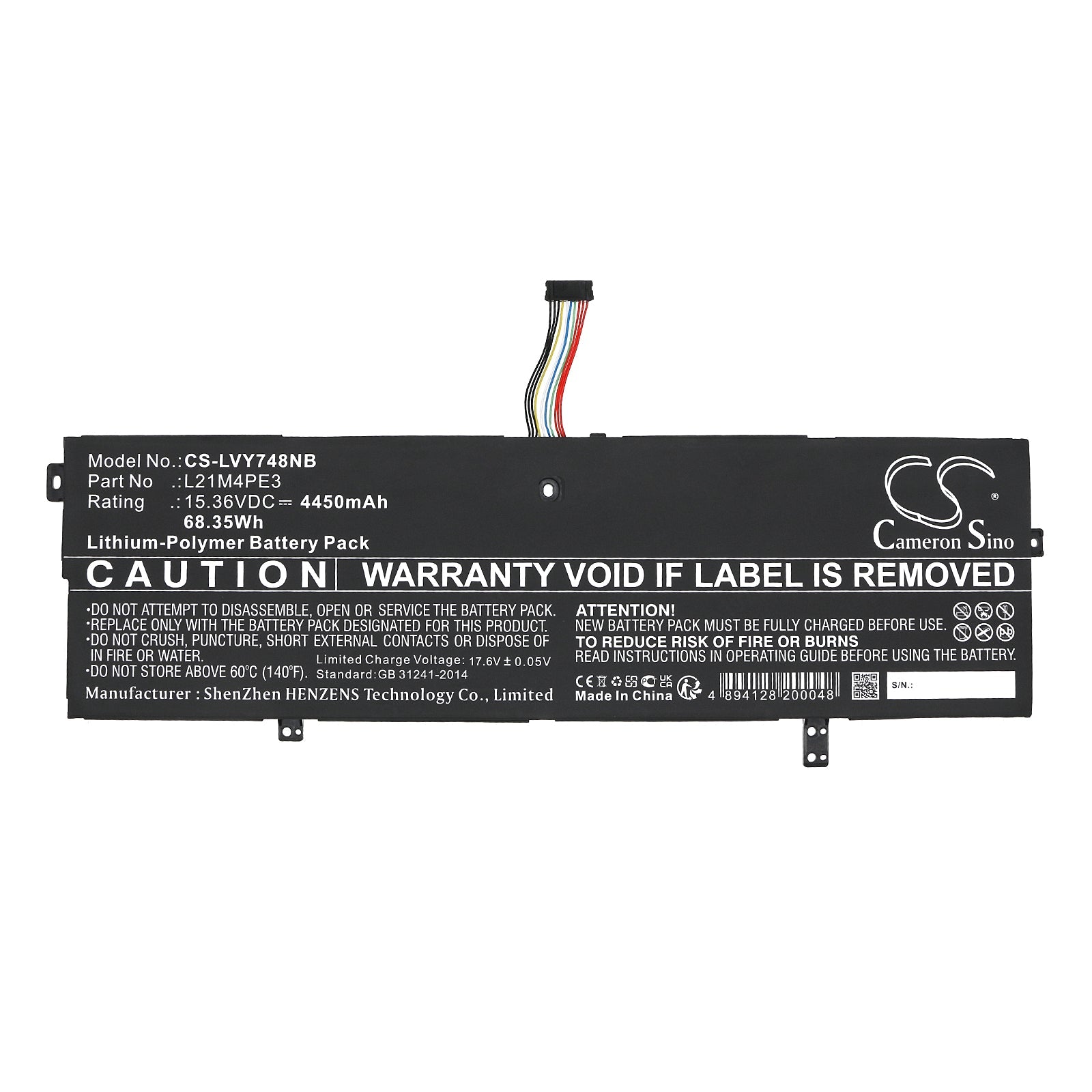- Capacity: 4450mAh / 68.35Wh / 15.36V
