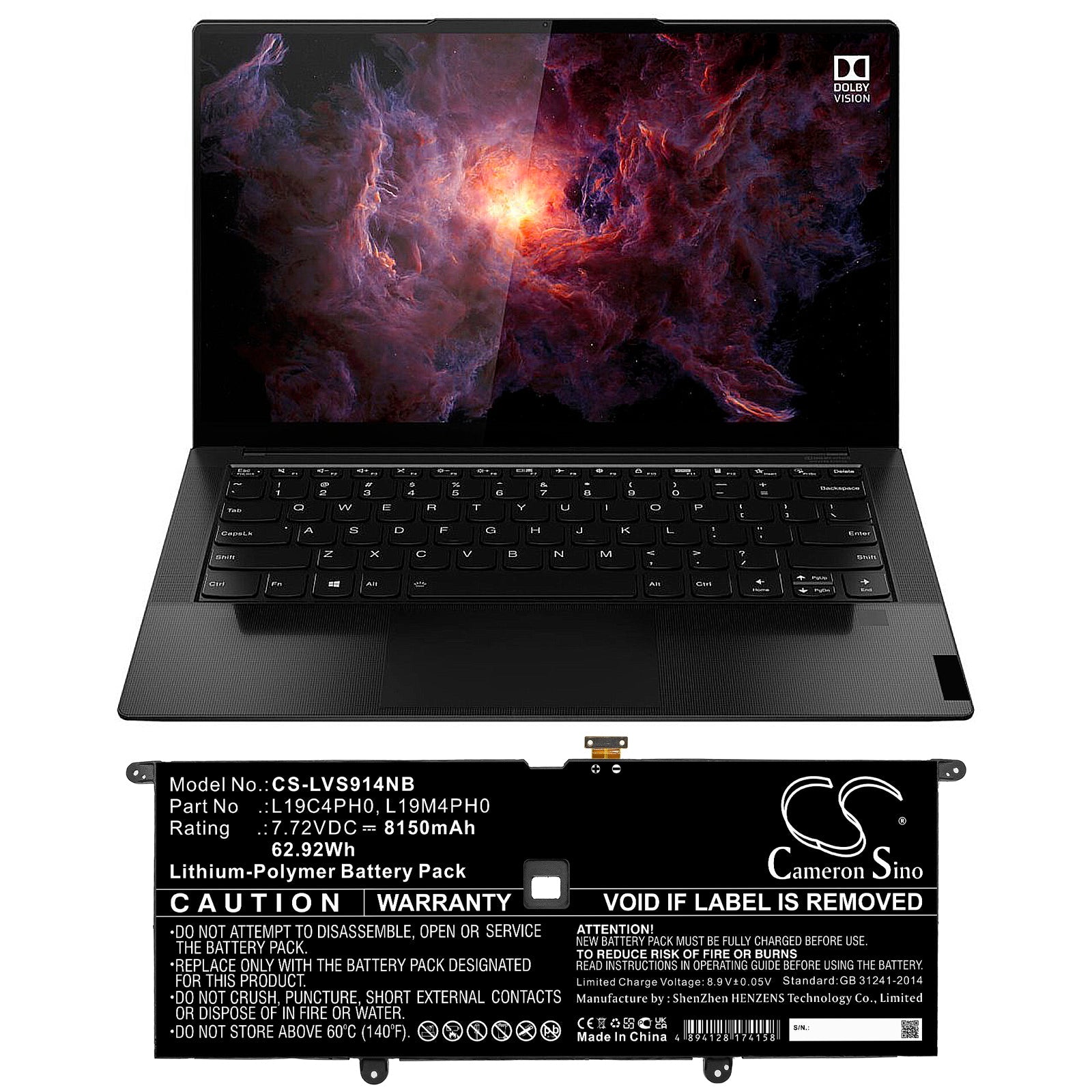 Replacement Battery for Lenovo Yoga Slim 9 14ITL5 82D10000UK – Notebook, Laptop – 8150mAh / 62.92Wh / 7.72V