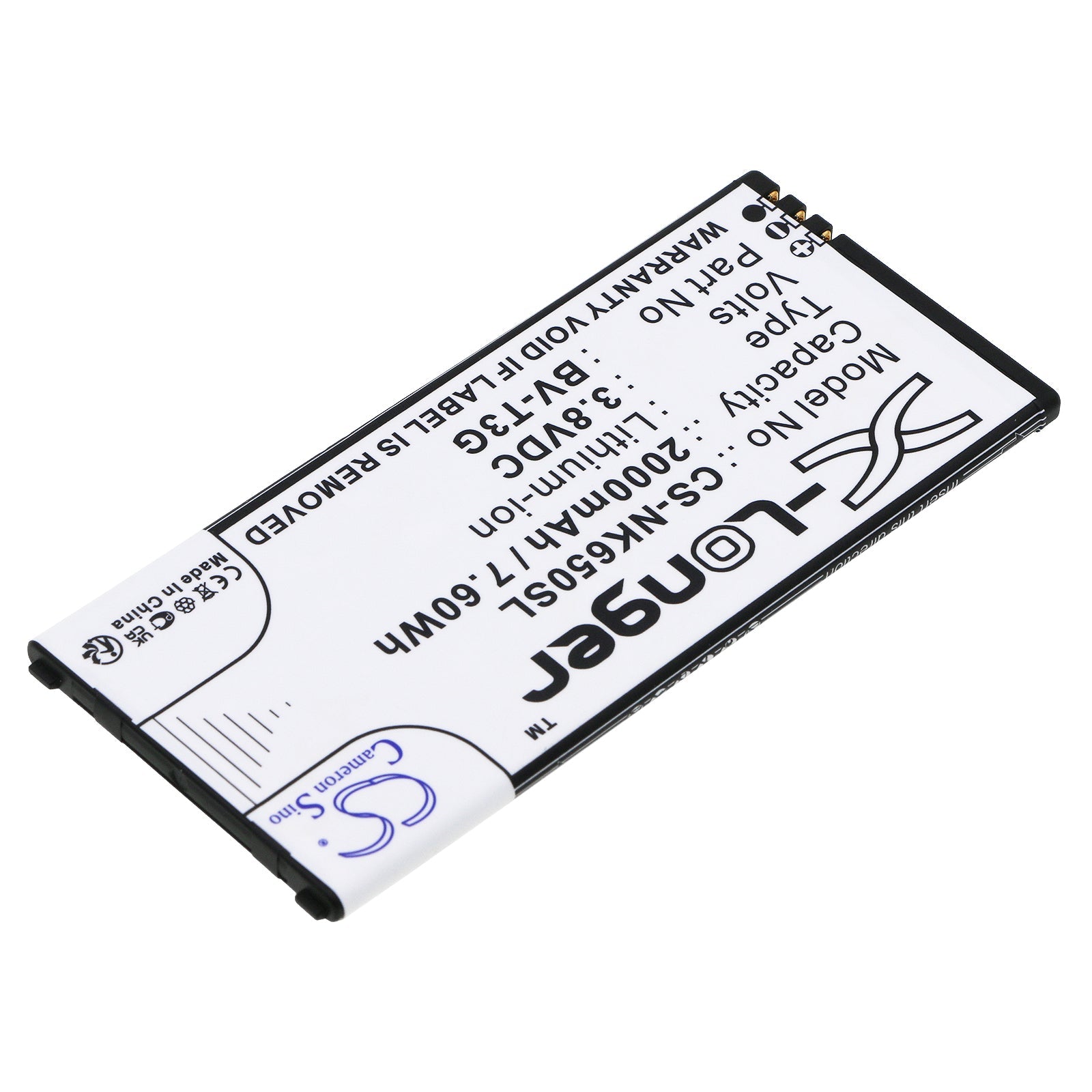 - Capacity: 2000mAh / 7.60Wh / 3.8V