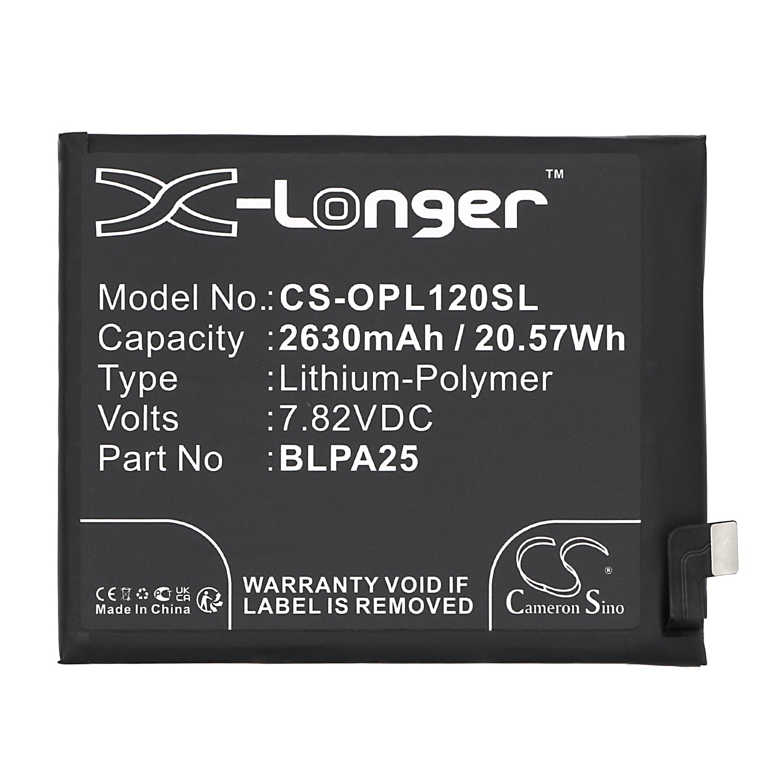 Replacement Battery for Oneplus 12 – Mobile, SmartPhone – 2630mAh / 20.57Wh / 7.82V