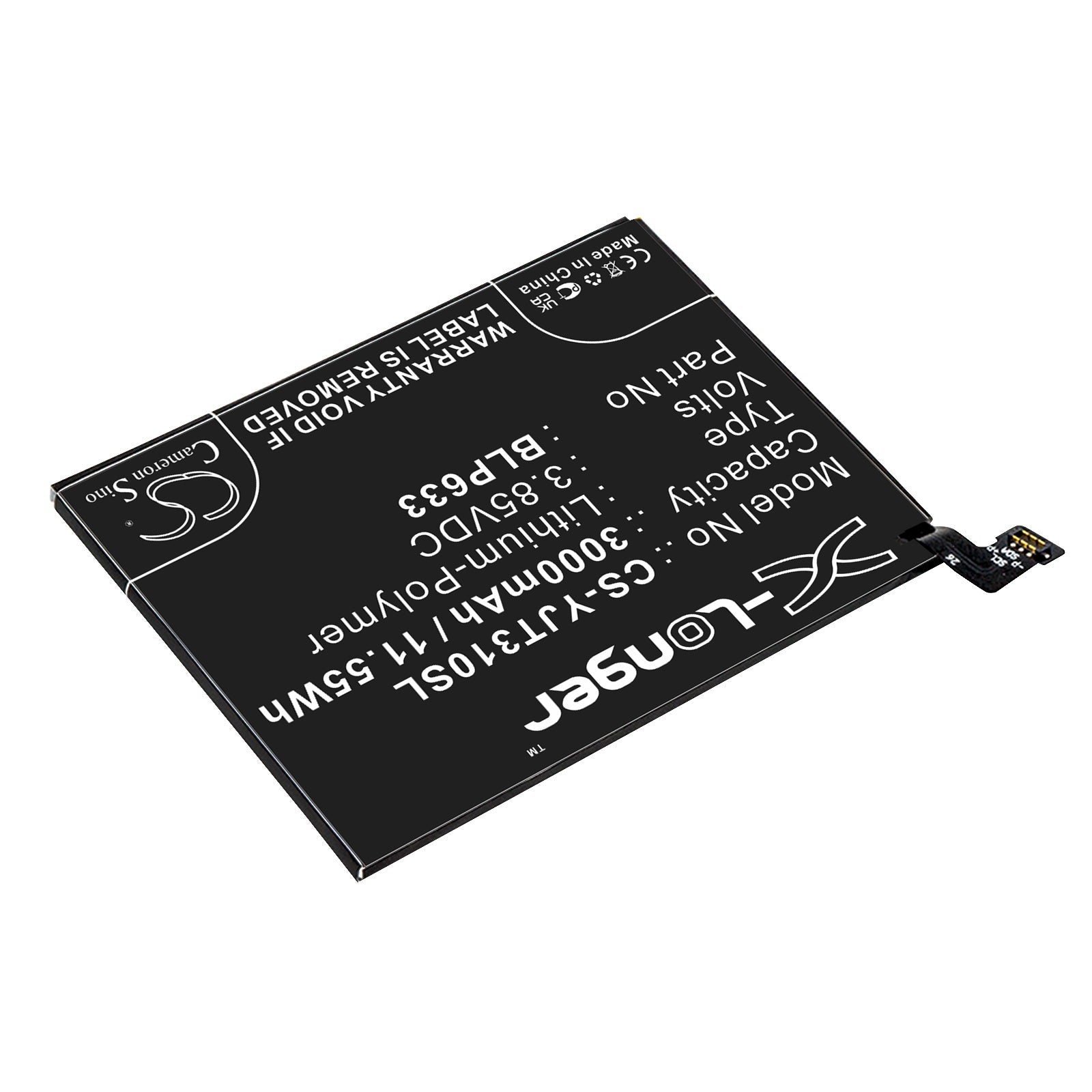 - Capacity: 3000mAh / 11.55Wh / 3.85V
