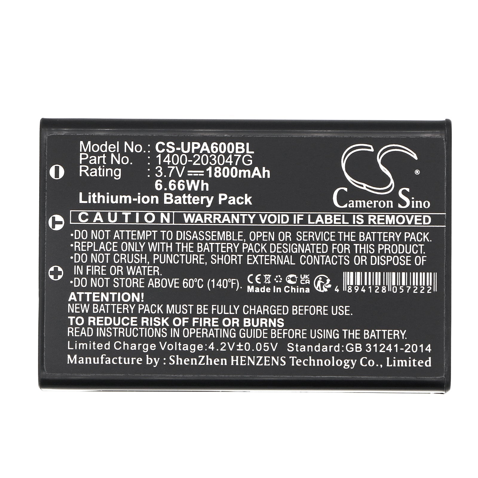 - Capacity: 1800mAh / 6.66Wh / 3.7V