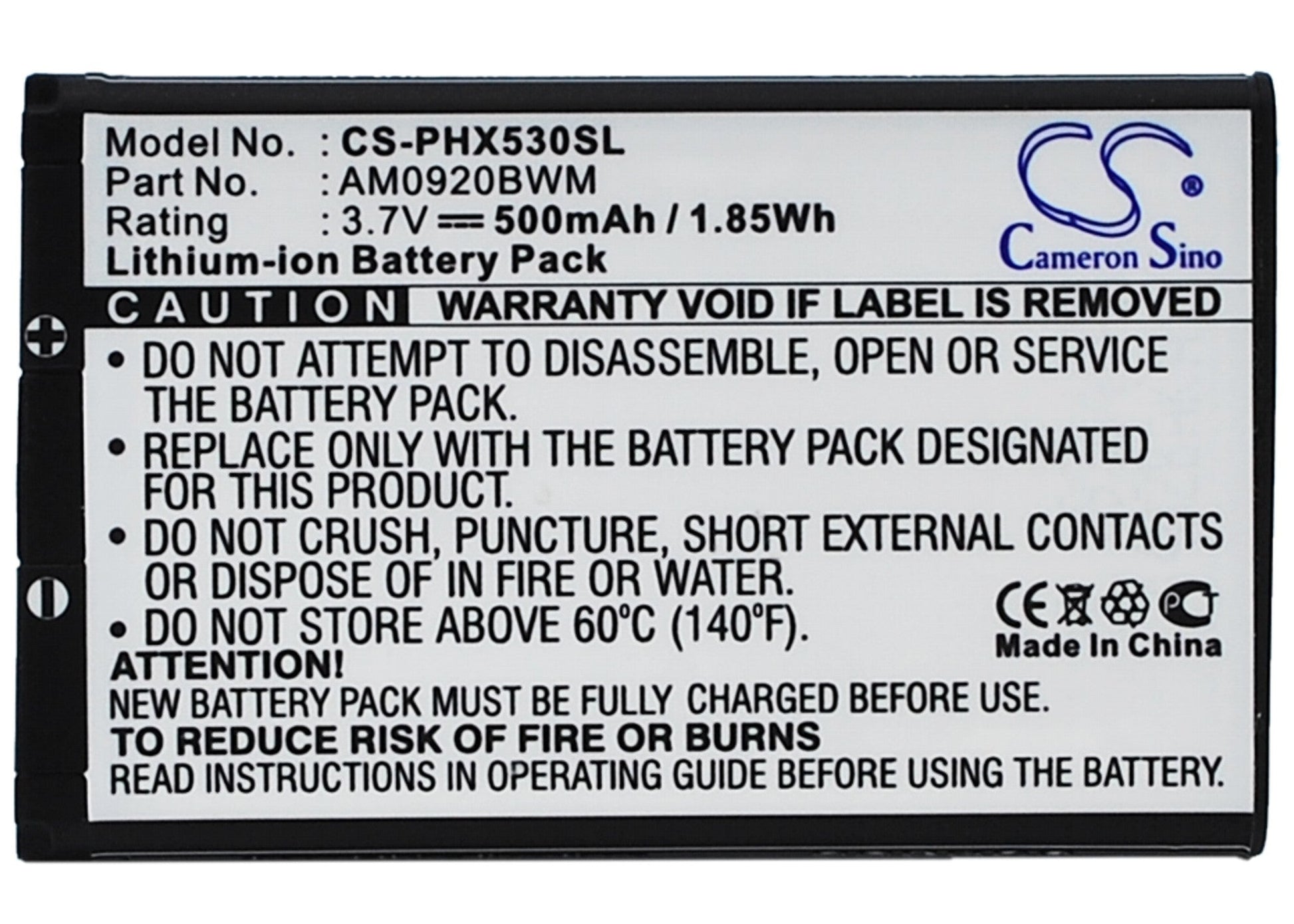 Replacement Battery for Philips 9@9Q – Mobile, SmartPhone – 500mAh / 1.85Wh / 3.7V
