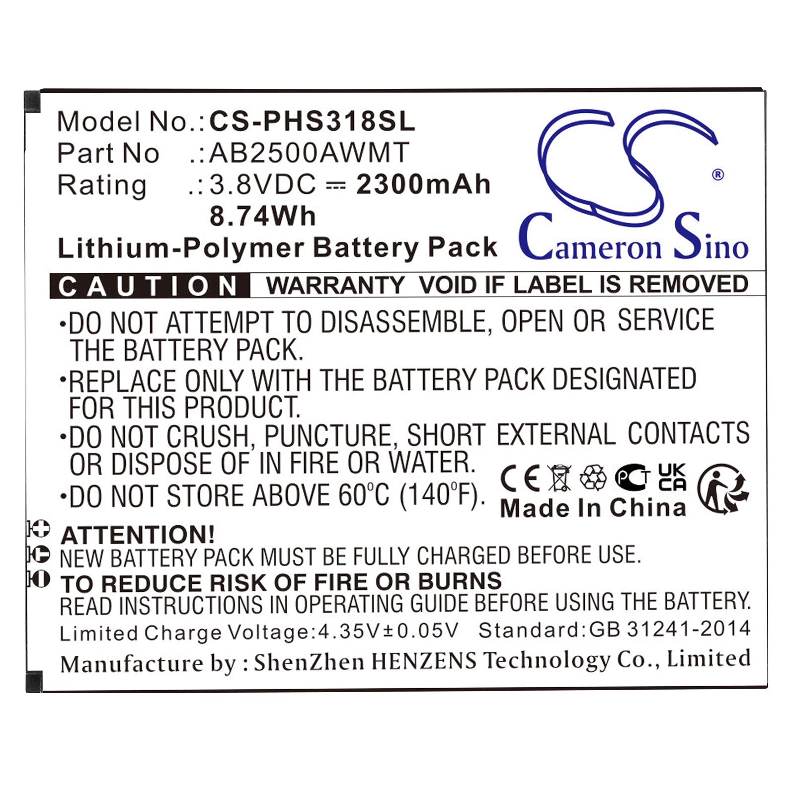 Replacement Battery for Philips CTS318 – Mobile, SmartPhone – 2300mAh / 8.74Wh / 3.8V