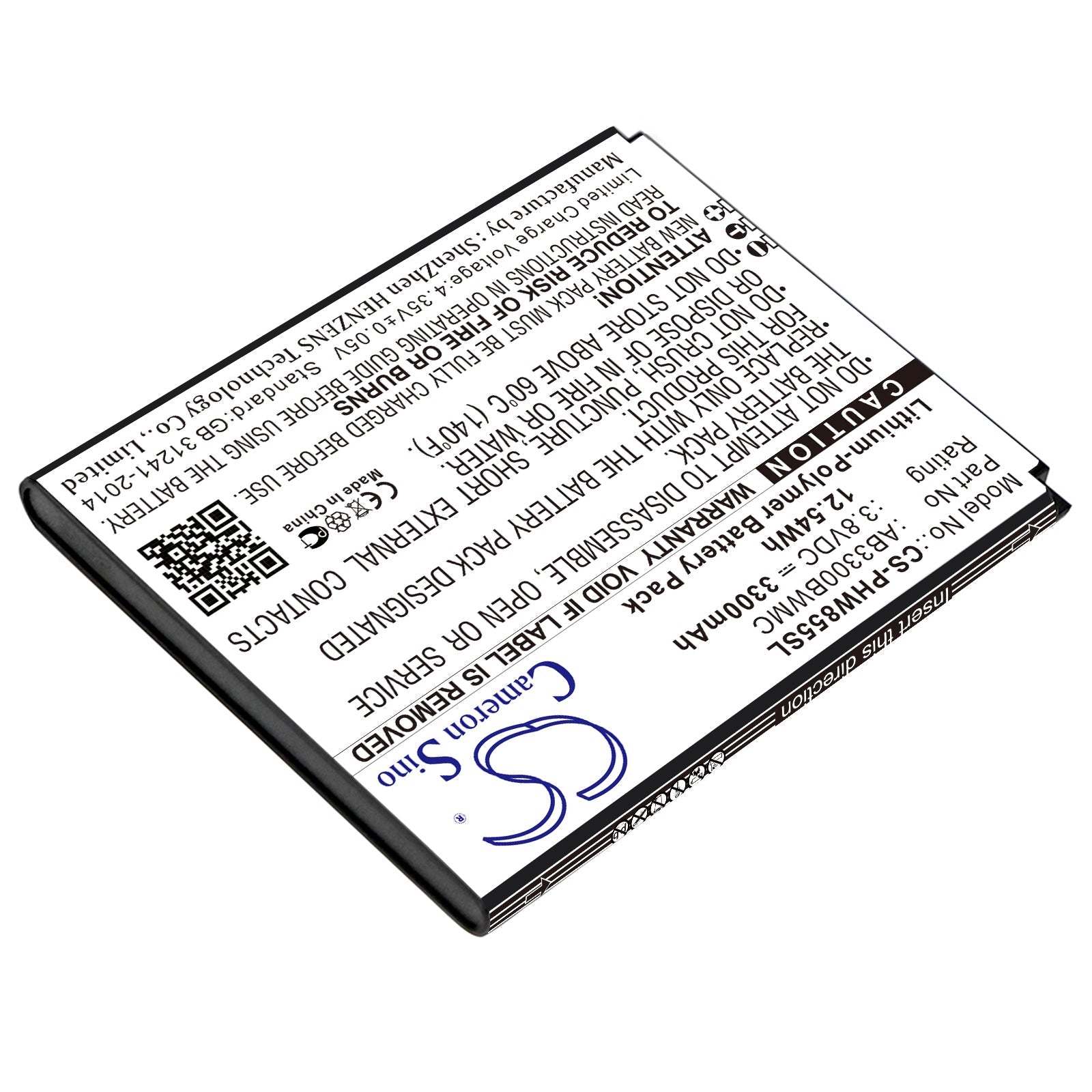 - Capacity: 3300mAh / 12.54Wh / 3.8V