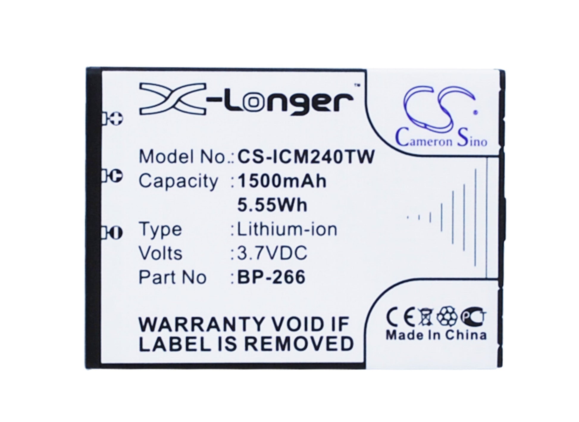 - Capacity: 1500mAh / 5.55Wh / 3.7V