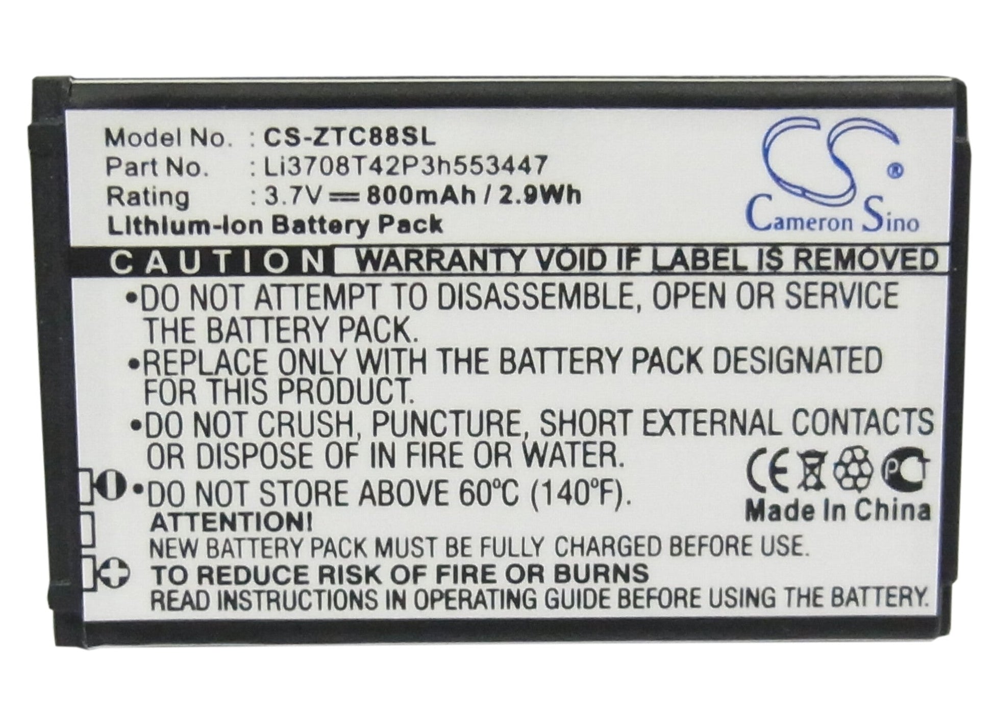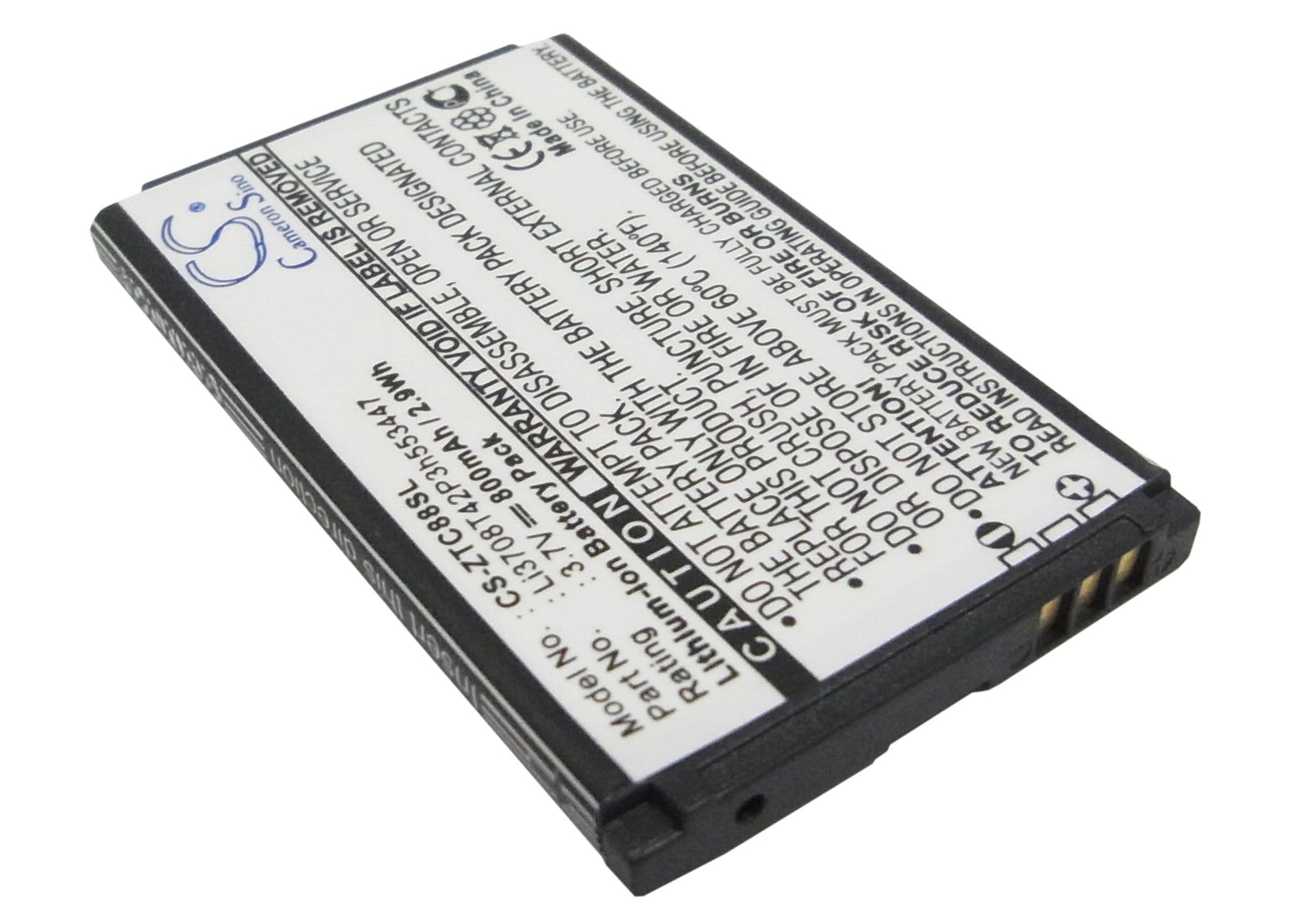 - Capacity: 800mAh / 2.96Wh / 3.7V