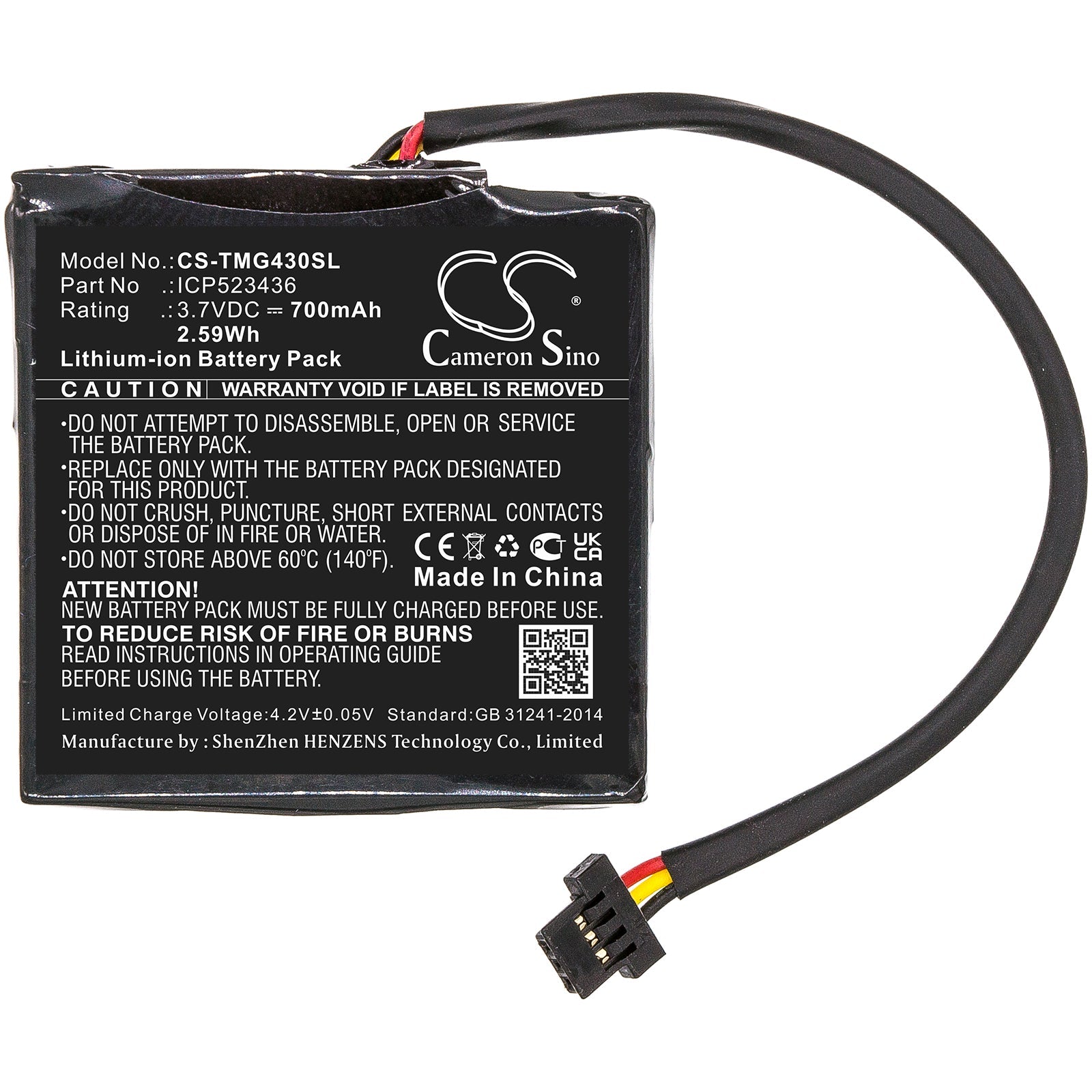 - Capacity: 700mAh / 2.59Wh / 3.7V
