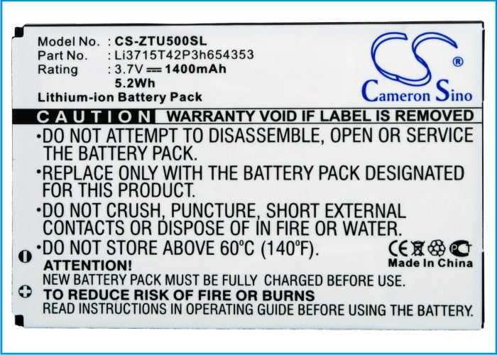 Is your ZTE battery running low on power? Our quality 1400mAh/5.2Wh / 3.7V replacement battery provides reliable operation at a competitive price. This is a compatible third-party product, not manufactured or endorsed by ZTE.