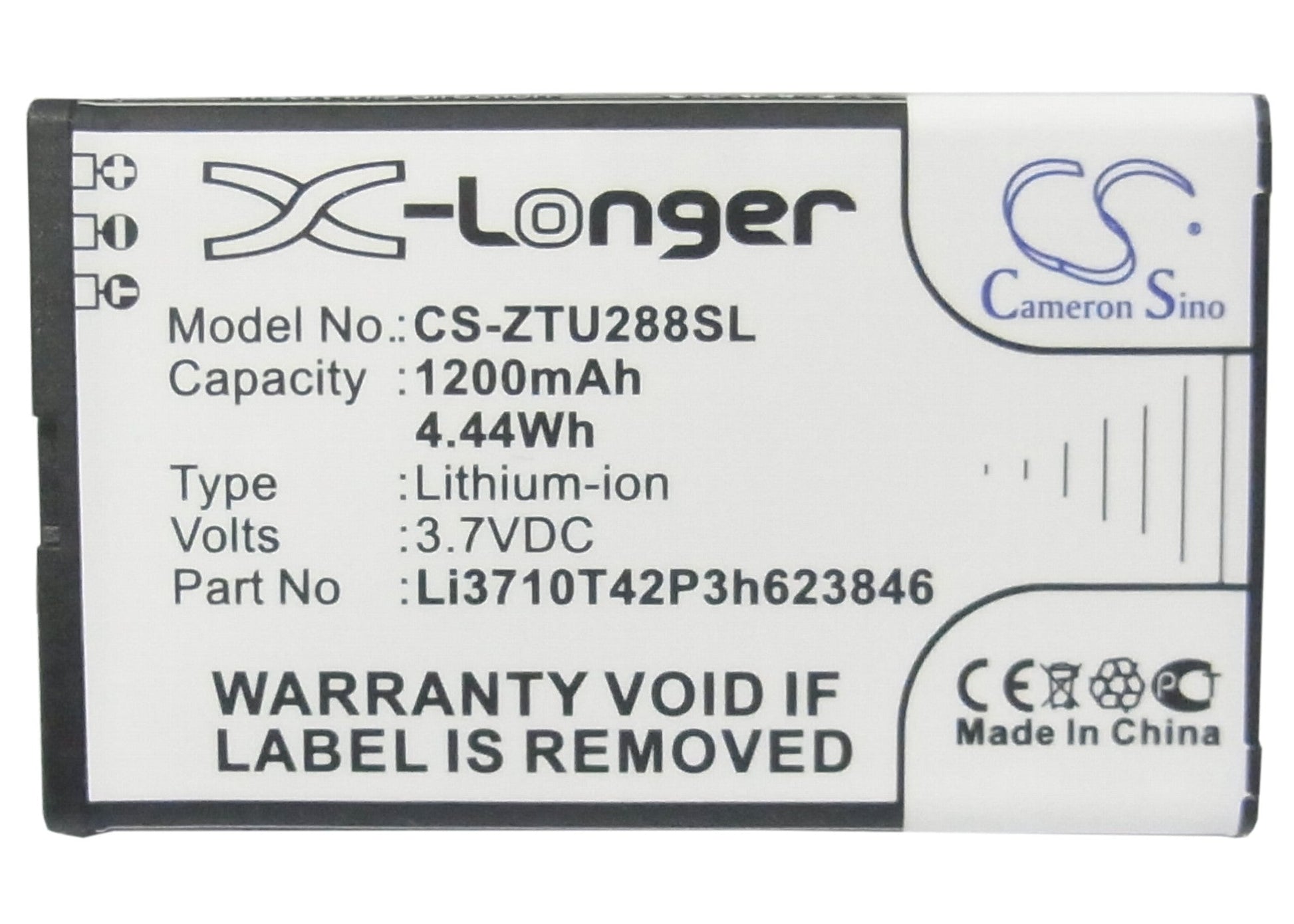 Is your ZTE battery running low on power? Our quality 1200mAh / 4.44Wh / 3.7V replacement battery provides reliable operation at a competitive price. This is a compatible third-party product, not manufactured or endorsed by ZTE.